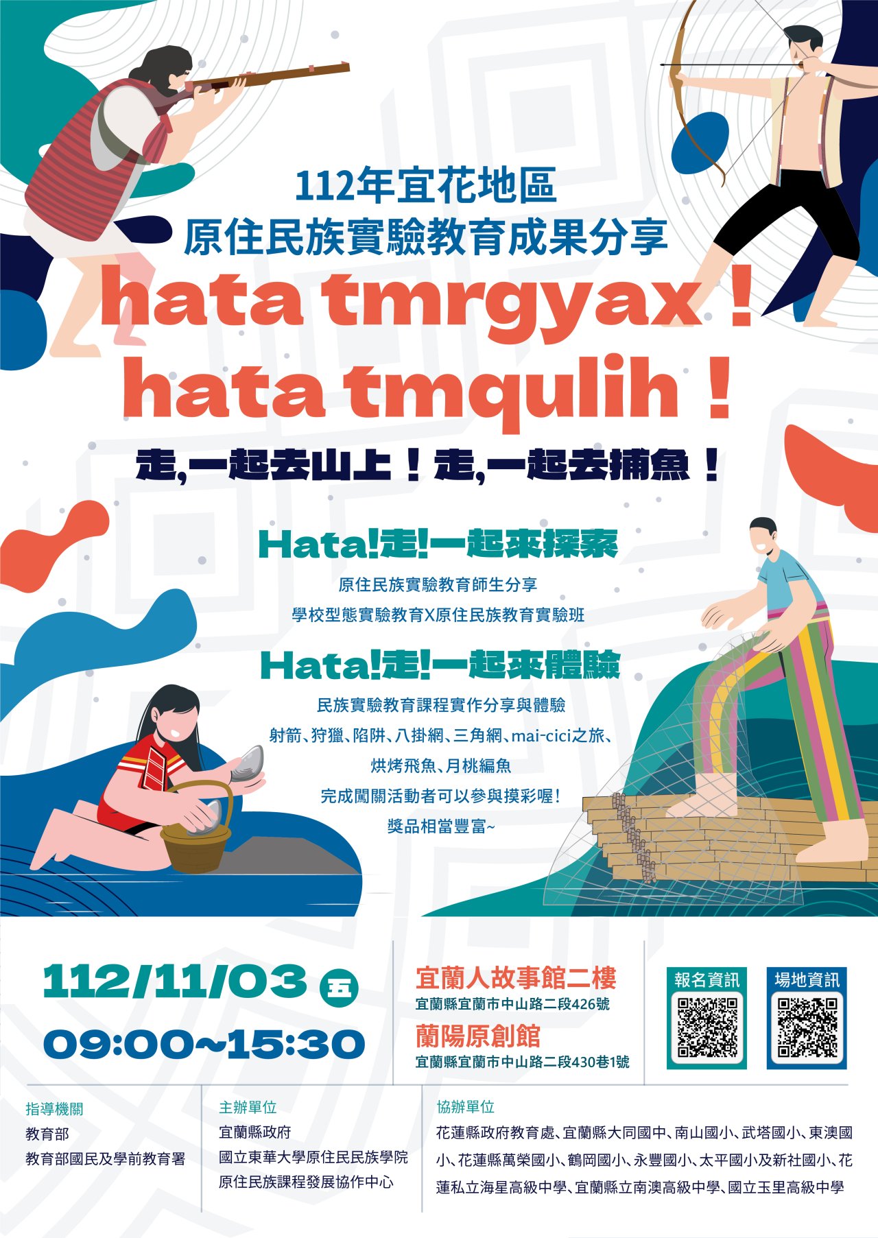 一、 | 活動係由宜蘭及花蓮地區原住民族實驗學校進行課程、教學與學生學習成果分享,並透過闖關活動之方式,由各校師生合作進行民族文化課程體驗,期能促進與會人員對於原住民族實驗教育有更為深入之理解,盼創造一聚焦、交流及多元對話的機會,提供相互參照與學習的平台。 |