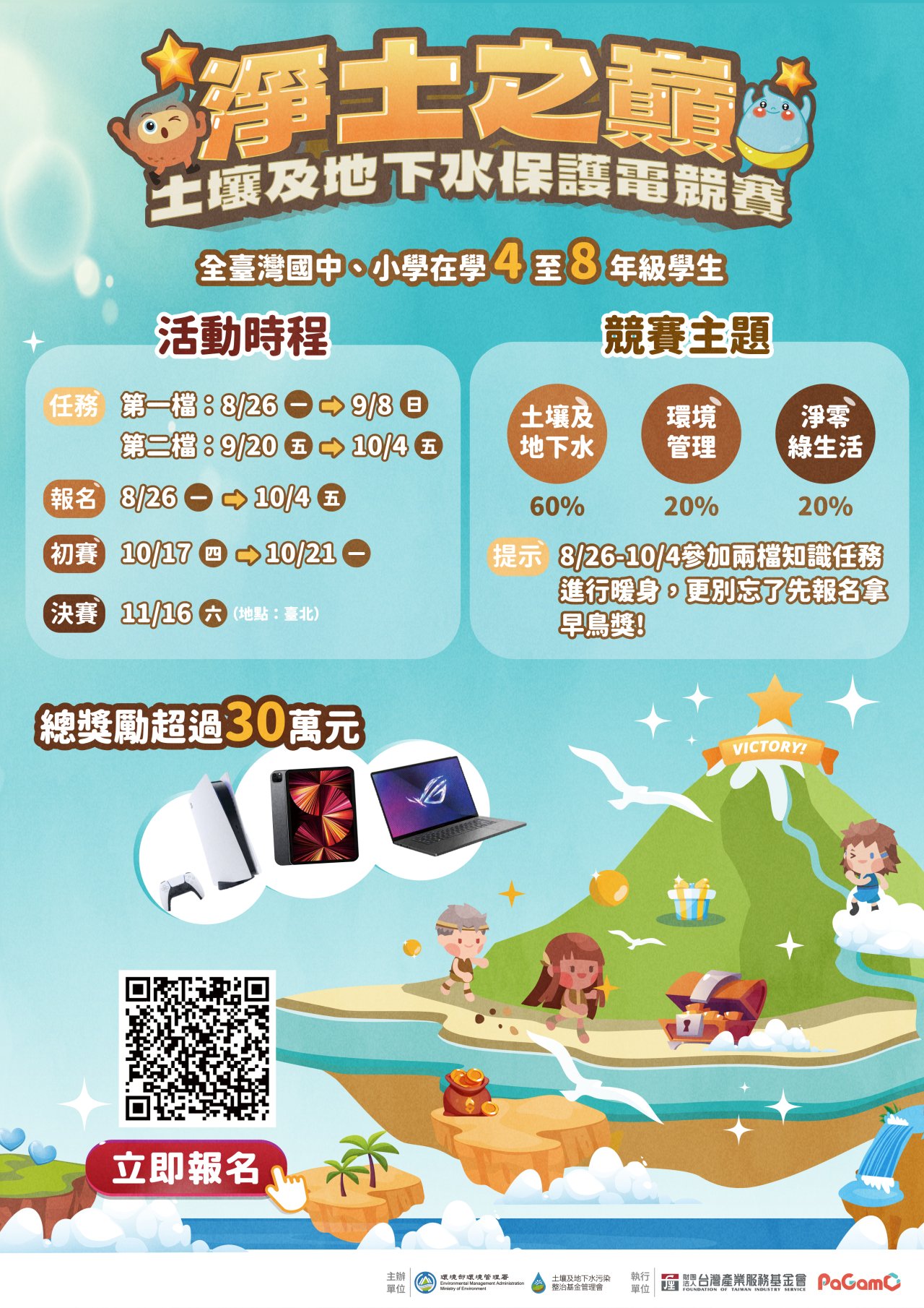 二、 | 為提升全國民眾了解土壤及地下水環境保護之重要,環境部環境管理署特辦理旨揭電競賽活動,競賽對象為國小四年級至國中八年級之在校生。 |
