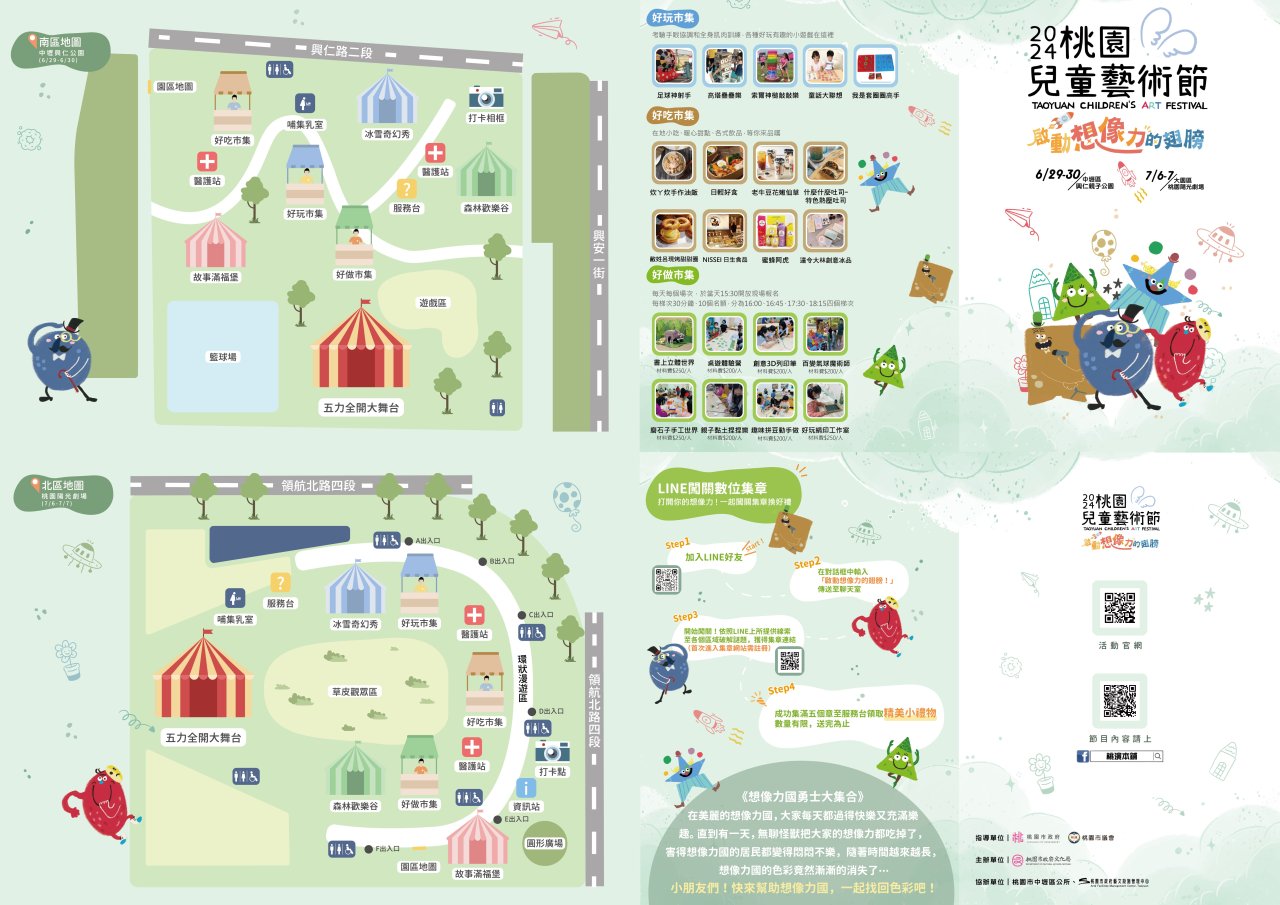 本局為推廣兒童藝術啟蒙與在地藝文紮根,規劃辦理「2024桃園兒童藝術節」活動,活動內容包含兒童市集、小型表演、故事劇場、主舞台大型演出,辦理時間及地點如下: