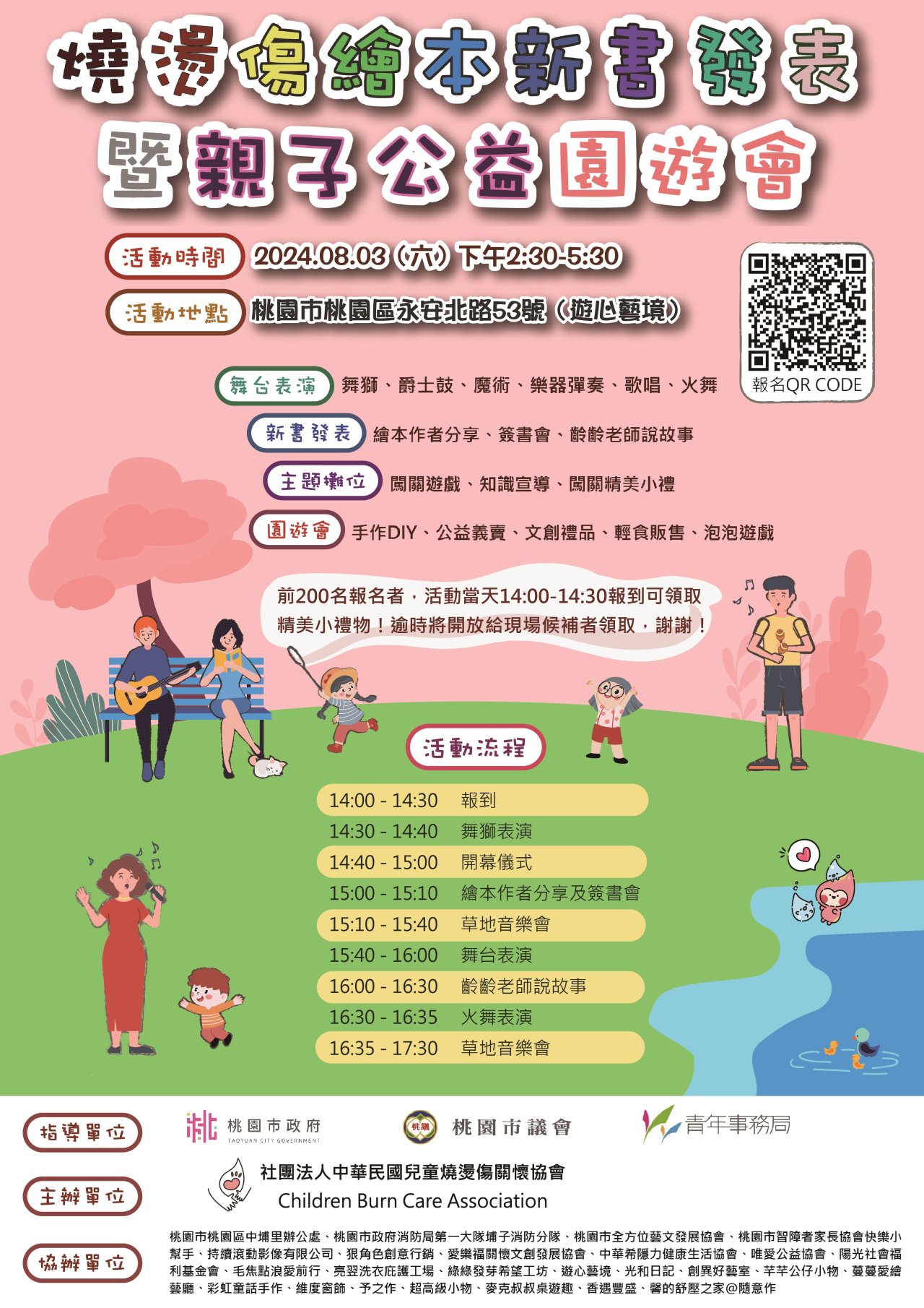 函轉社團法人中華民國兒童燒燙傷關懷協會訂於113年8月3日辦理「燒燙傷繪本新書發表暨親子公益園遊會」活動