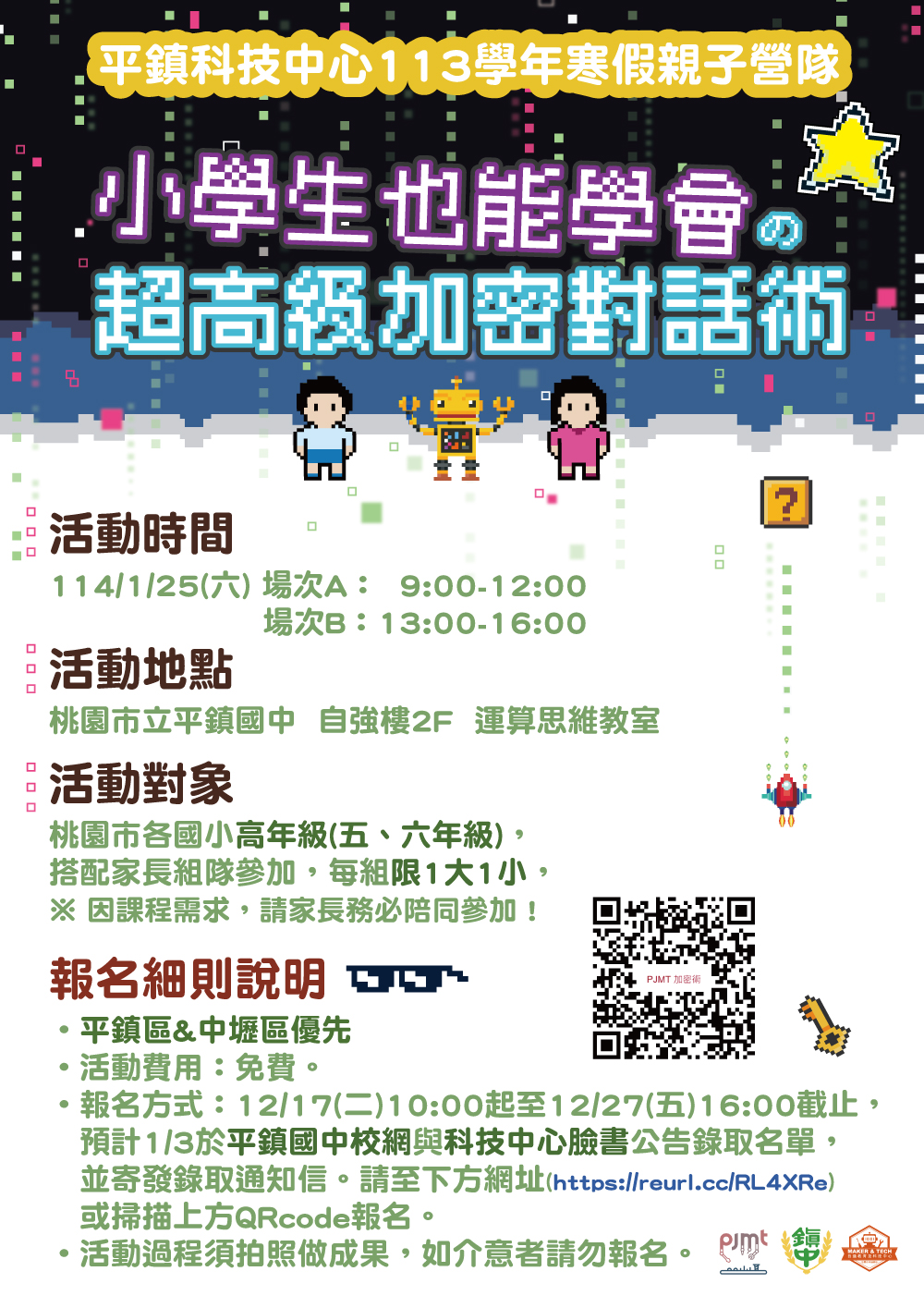 有關平鎮國中辦理平鎮自造教育及科技中心113學年寒假國小親子營隊訊息