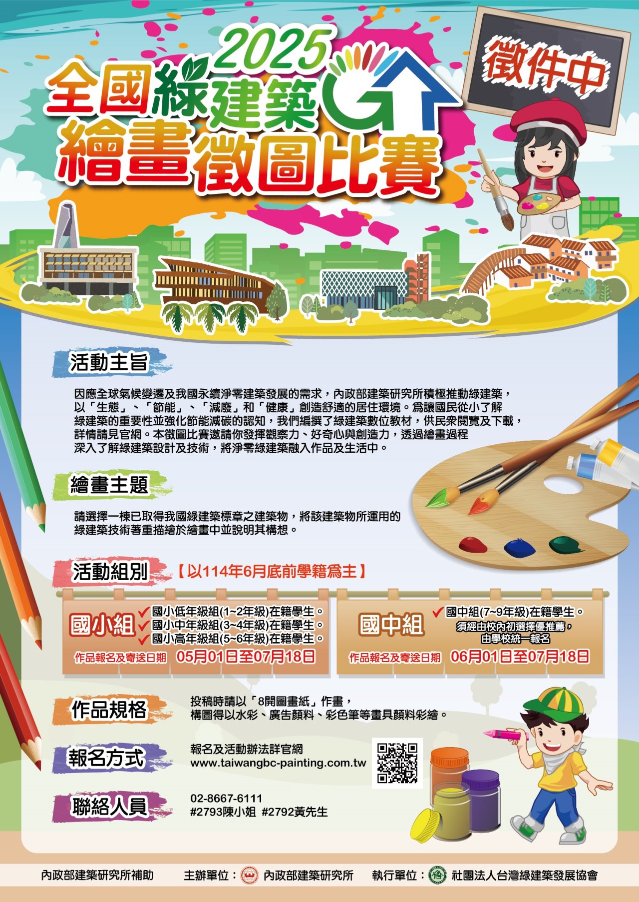 本所本(114)年度辦理「2025全國綠建築繪畫徵圖比賽」,敬請鼓勵貴校學生踴躍報名參加,請查照。