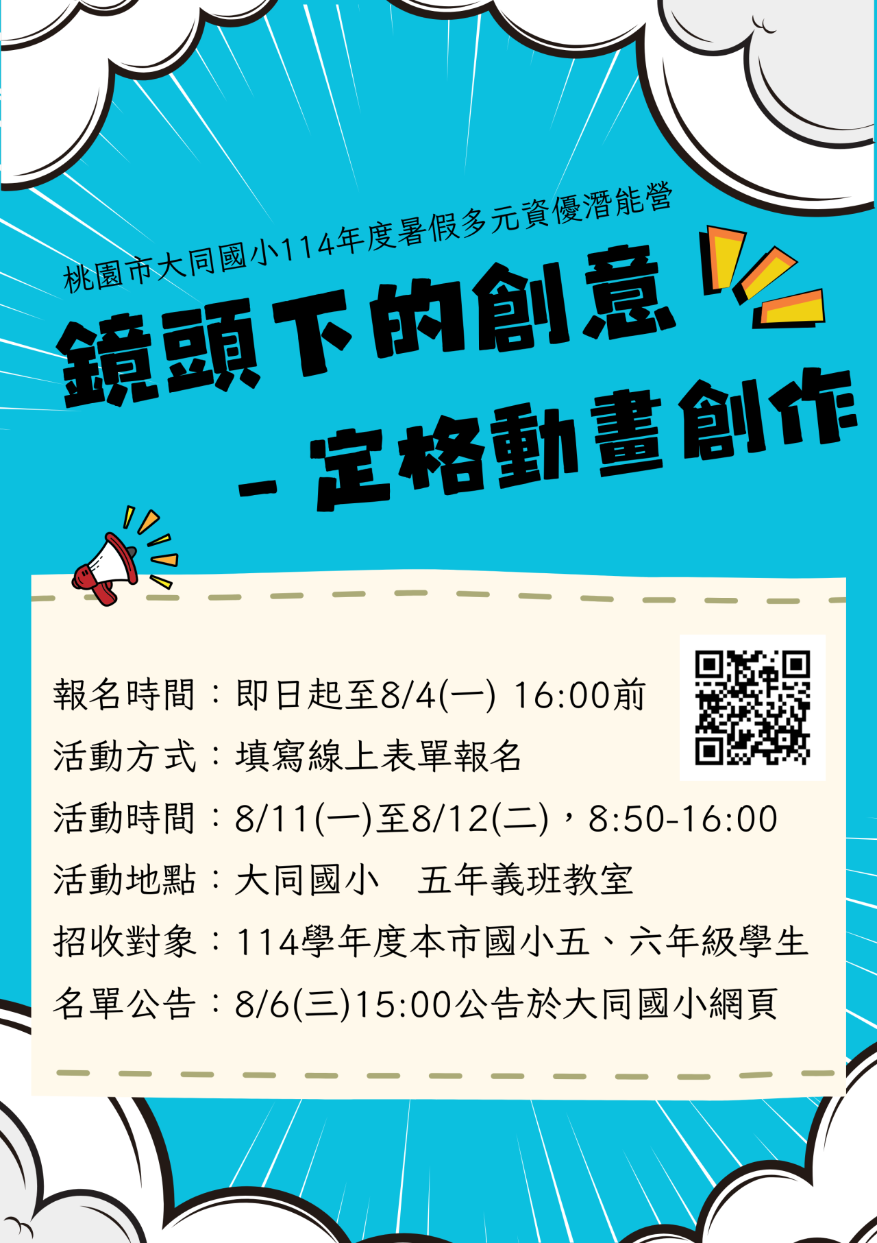 2.錄取名單將於114/8/6(三)15:00公告於大同國小網頁,敬請留意錄取後注意事項。 |