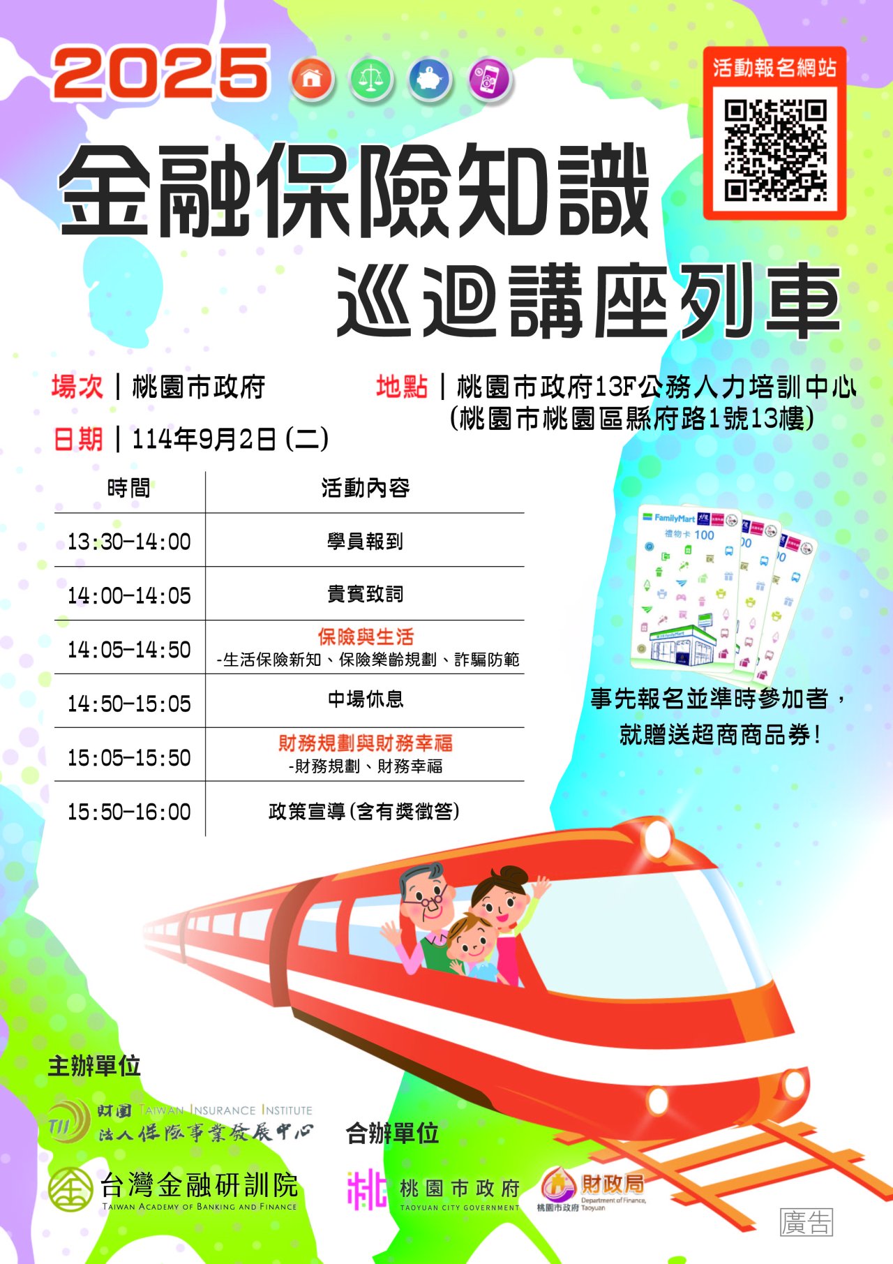 有關「2025金融保險知識巡迴講座列車」活動,請貴單位人員踴躍參加,並協助轉知本活動訊息,請查照。